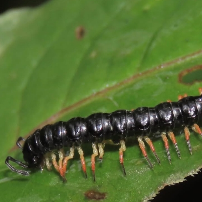 ![]() 上面照片:陳維琪拍攝 節肢動物門 〉倍足綱 〉帶馬陸目 〉奇馬陸科 〉Orthomorpha屬 〉粗直形馬陸(Orthomorpha coarctata) (原生種;台灣物種名錄僅有學名,尚無中文名;各體節側緣黃褐色) |