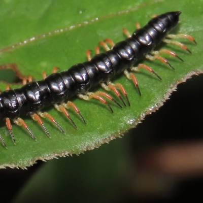 ![]() 上面照片:小花老師拍攝 節肢動物門 〉倍足綱 〉帶馬陸目 〉光帶馬陸科 〉琉球帶馬陸屬 〉霍氏琉球帶馬陸(Riukiaria holstii) (台灣物種名錄僅有學名,尚無中文名;iNaturalist 標名霍氏琉球帶馬陸,附有照片) |