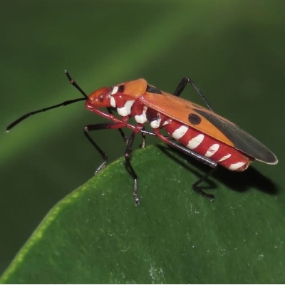 ![]() 上面照片:張儷蓁拍攝 (成蟲) 大紅蝽科 〉斑紅蝽屬 〉東亞斑紅蝽(Physopelta parviceps) (原生種) |