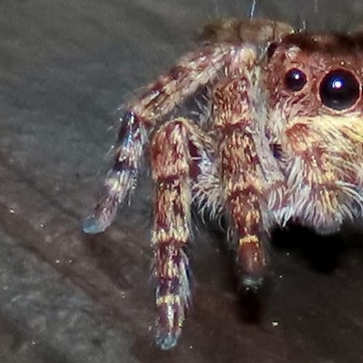 ![]() 上面照片:小花老師拍攝 (雄蛛) 蠅虎科 〉盤蛛屬 〉大盤蛛(Pancorius magnus) (原生種;台灣物種名錄附有照片) |
