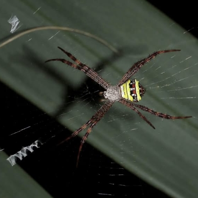 ![]() 上面照片:潘玉郎拍攝 金蛛科 〉金蛛屬 〉中形金蛛(Argiope aetheroides、蟲蝕痕金蛛) (原生種;台灣物種名錄標名中形金蛛,別名蟲蝕痕金蛛,附有照片) |