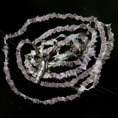 ![]() 上面照片:小花老師拍攝 金蛛科 〉金蛛屬 〉中形金蛛(Argiope aetheroides、蟲蝕痕金蛛) (原生種;台灣物種名錄標名中形金蛛,別名蟲蝕痕金蛛,附有照片) |