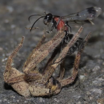 ![]() 上面照片:小花老師拍攝 (雌蛛;阿澳溝蛛蜂正在處理屏東高腳蛛,帶回食物) 高腳蛛科 〉高腳蛛屬 〉屏東高腳蛛(Heteropoda pingtungensis) (原生種;台灣物種名錄標名屏東高腳蛛,附有照片) |