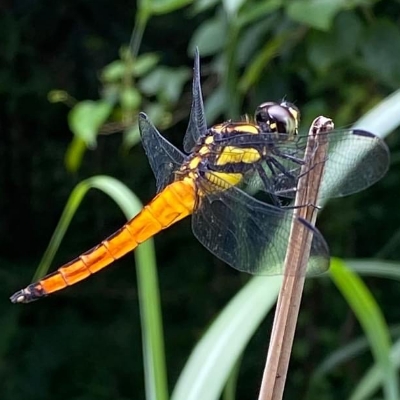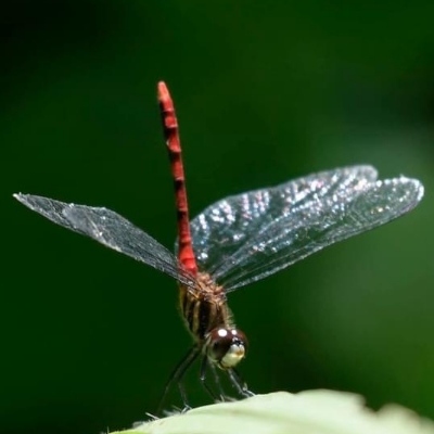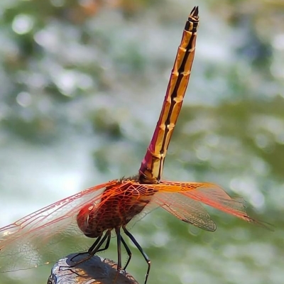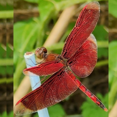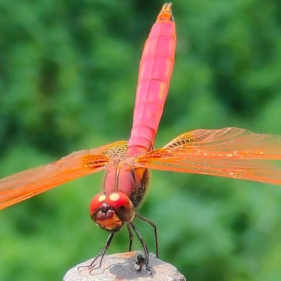 ![]() 上面照片:陳玉琴拍攝 (雄) 蜻蜓科 〉褐蜻屬 〉樂仙蜻蜓(Trithemis festiva) (原生種;台灣物種名錄標名樂仙蜻蜓,附有照片;維基百科標示褐蜻屬;體長約4公分) |