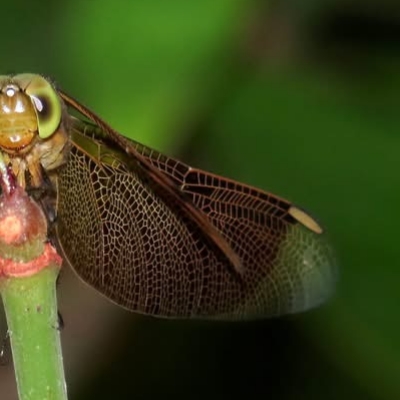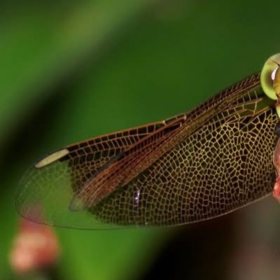 ![]() 上面照片:潘玉郎拍攝 (雌,黃褐型) 蜻蜓科 〉Neurothemis 〉善變蜻蜓(Neurothemis taiwanensis) (台灣特有種;體長近4公分;雄蟲翅誌和攫握器紅色;雌蟲體色有兩型,紅色和黃褐色,翅痣黃白色或紅色,體色多變) |