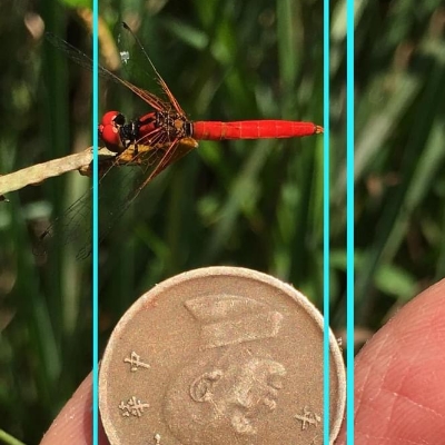 ![]() 上面照片:沈揮勝拍攝 (雄,未熟) 蜻蜓科 〉赤腹蜻屬 〉纖紅蜻蜓(Sympetrum nantouensis) (台灣特有種;體長約4公分) |
