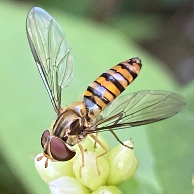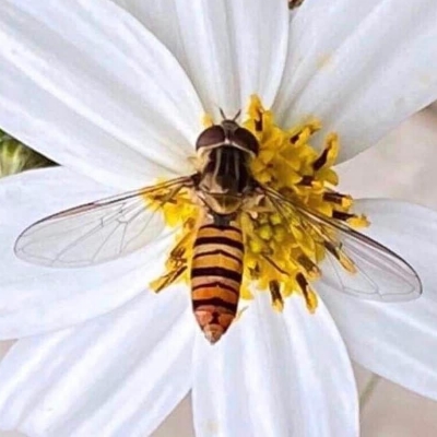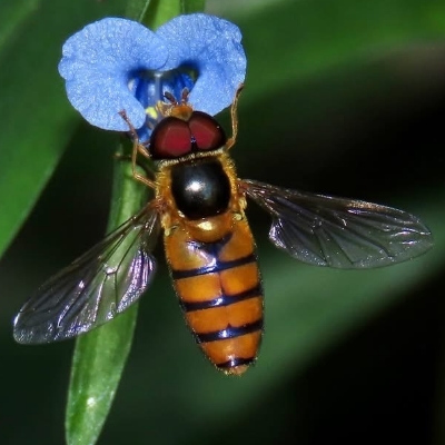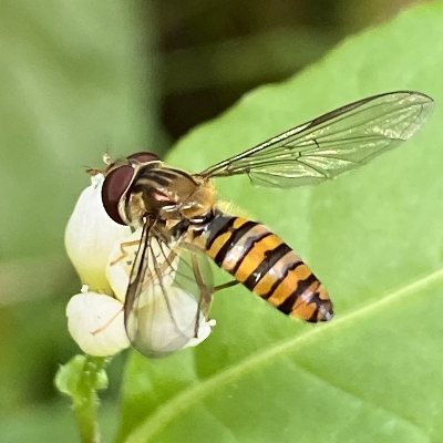 ![]() 上面照片:張儷蓁拍攝 食蚜蠅科 〉前蚜蠅屬 〉佩帶蚜蠅(Episyrphus balteatus、細扁食蚜蠅) (原生種;台灣物種名錄標名佩帶蚜蠅;維基百科標名細扁食蚜蠅,別名黑紋食蚜蠅、佩帶蚜蠅 ,附有照片) |