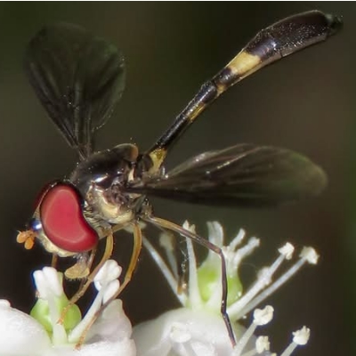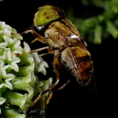 ![]() 上面照片:陳維琪拍攝 (雌) 食蚜蠅科 〉尾蚜蠅屬 〉短刺刺腿食蚜蠅(短刺蚜蠅) |