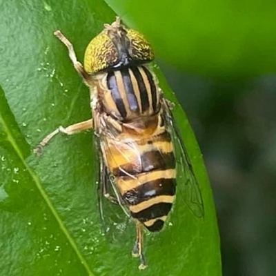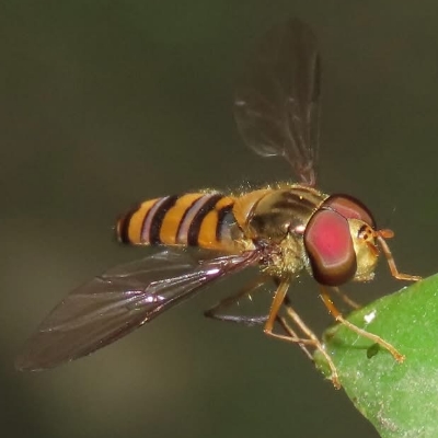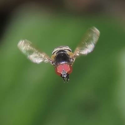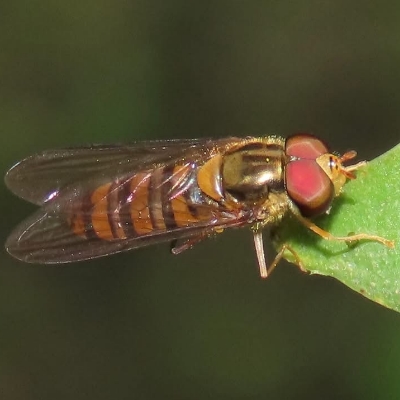 ![]() 上面照片:蟹老闆拍攝於新北土城 食蚜蠅科 〉寶玉蚜蠅屬 (斑眼蚜蠅屬) 〉喜眼斑蚜蠅(Eristalinus megacephalus) (台灣物種名錄查無此學名及中文名,標示寶玉蚜蠅屬;維基百科尚無中文名,標示斑眼蚜蠅屬) |
