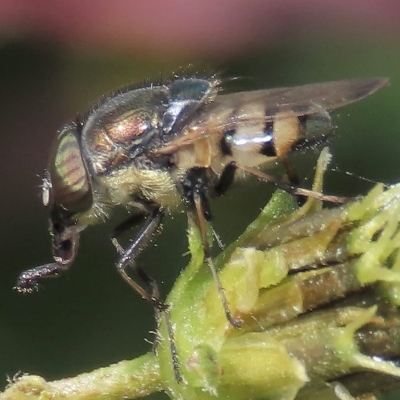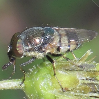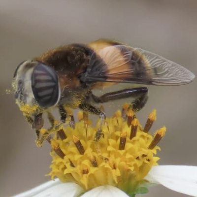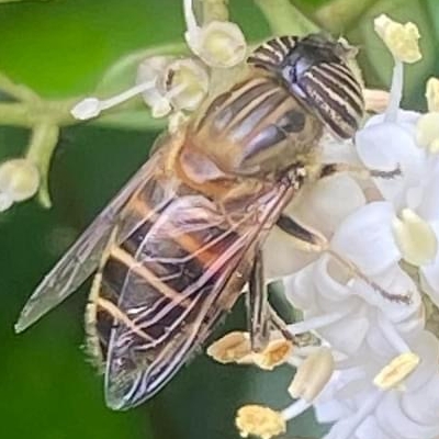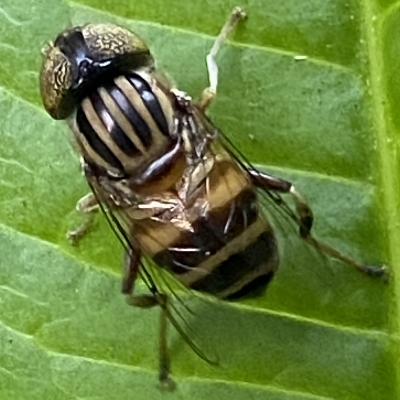 ![]() 上面照片:潘玉郎拍攝 (雌) 食蚜蠅科 〉寶玉蚜蠅屬 (斑眼蚜蠅屬) 〉紋眼食蚜蠅(Eristalinus taeniops) (台灣物種名錄查無此學名及中文名,標示寶玉蚜蠅屬;維基百科尚無中文名,標示斑眼蚜蠅屬,附有照片;生命大百科標名紋眼食蚜蠅) |