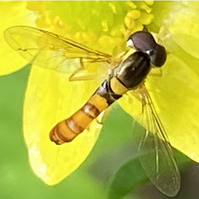 ![]() 上面照片:潘玉郎拍攝 食蚜蠅科 〉小蚜蠅屬 (迷蚜蠅屬) 〉蚜蠅 (體長約12~15mm) |