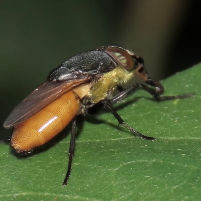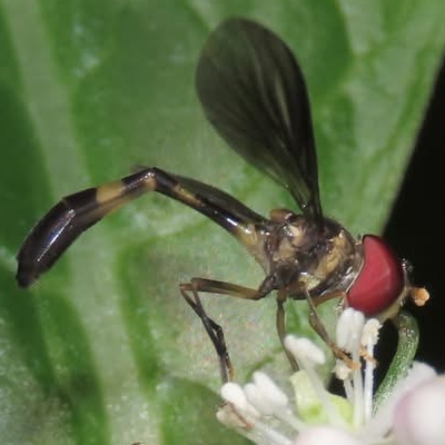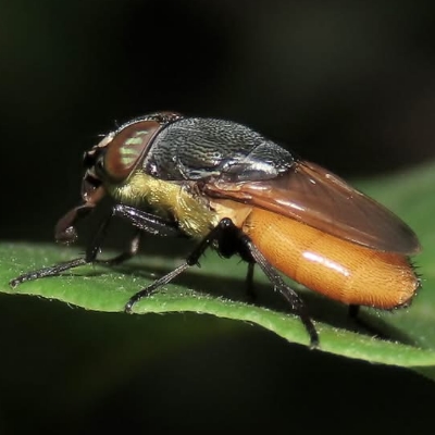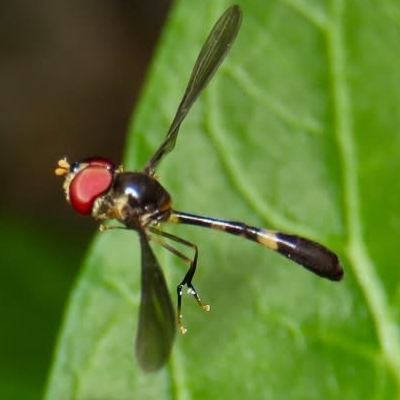 ![]() 上面照片:張儷蓁拍攝 廣口蠅科 〉肘角廣口蠅屬 〉蓬萊廣口蠅(Loxoneura formosae) (原生種;體長近1公分;頭部和複眼橙紅) |