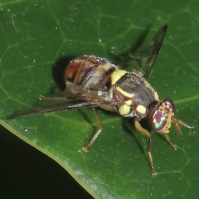 ![]() 上面照片:小花老師拍攝 麗蠅科 〉錐口蠅屬 〉黃腹口鼻蠅(Stomorhina xanthogaster) (原生種;體長不到1公分) |