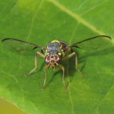 ![]() 上面照片:小花老師拍攝 眼蠅科 〉Cerioides 屬 〉擬蜂眼蠅(Cerioides annulata) (台灣物種名錄查無此屬的中文名及本物種的中文名和學名;TaiEOL台灣生命大百科標名擬蜂眼蠅,標示學名 Cerioides sp.,附有照片;體長約2.5公分) |