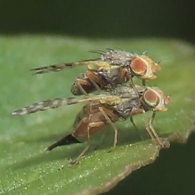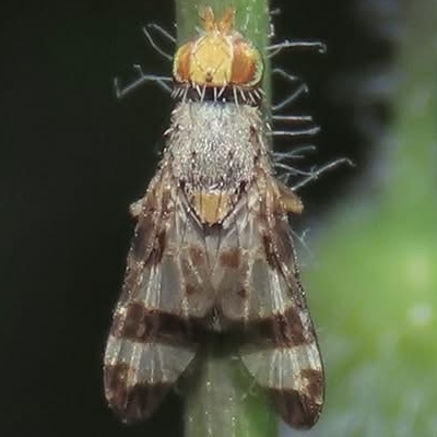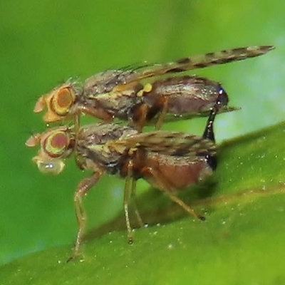 ![]() 上面照片:張儷蓁拍攝 眼蠅科 〉囊頭眼蠅屬(叉芒眼蠅屬) (體長1公分多) |
