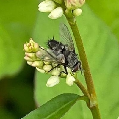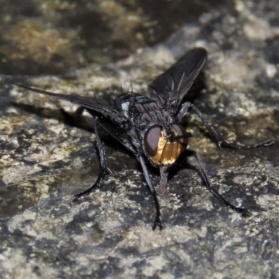 ![]() 上面照片:鄭演義拍攝 (雄) 家蠅科 〉齒股蠅屬 〉斑蹠齒股蠅(Hydrotaea chalcogaster) (台灣物種名錄查無此學名及中文名;體長約1公分) |