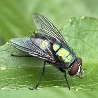 ![]() 上面照片:蟹老闆拍攝於新北市中和 麗蠅科 〉綠蠅屬 〉絲光銅綠蠅(Lucilia sericata、絲光綠蠅、綠豆蠅) (原生種;體長約1公分) |