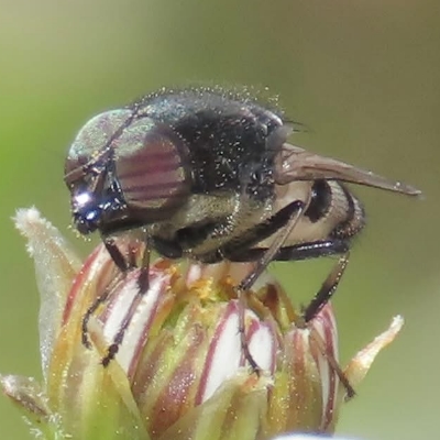 ![]() 上面照片:張儷蓁拍攝 寄生蠅科 〉Aplomya 屬 〉裸短尾寄蠅(Aplomya metallica) (原生種;台灣物種名錄僅有學名,尚無中文名) |