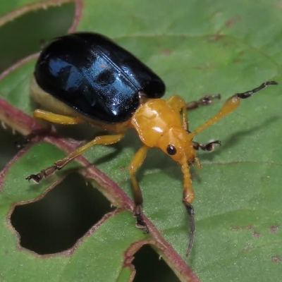 ![]() 上面照片:小花老師拍攝 金花蟲科 〉琉璃擬守瓜屬 〉大琉璃擬守瓜(Agetocera discedens、大琉璃金花蟲) (台灣特有種;台灣物種名錄標名大琉璃擬守瓜;體長1公分多;雄蟲觸角中間黃色膨大) |