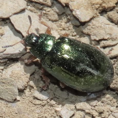 ![]() 上面照片:小花老師拍攝 金花蟲科 〉甘藷猿金花蟲屬 〉甘藷猿金花蟲(Colasposoma viridicoeruleum) (原生種;台灣物種名錄附有照片;體長約0.5公分) |