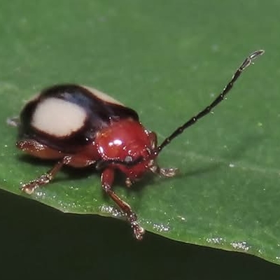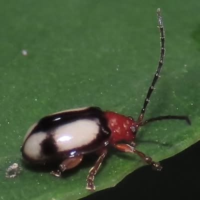 ![]() 上面照片:陳維琪拍攝 金花蟲科 〉巨首長筒金花蟲屬 〉黑斑紅長筒金花蟲(Coptocephala bifasciata、黑斑紅筒金花蟲) (原生種) |