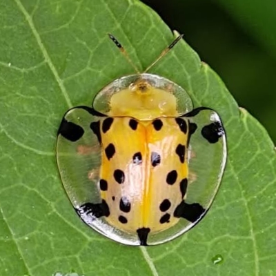 ![]() 上面照片:張儷蓁拍攝 金花蟲科 〉圓龜金花蟲屬 〉大黑星龜金花蟲(Aspidimorpha miliaris、星斑梳龜甲) (原生種) |