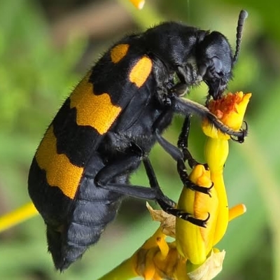 ![]() 上面照片:潘玉郎拍攝 地膽科 〉Hycleus 屬 〉大橫紋芫青(Hycleus phaleratus、大橫紋地膽、大斑芫菁、大芫菁、大斑蝥、南方大斑蝥、大黃斑芫菁) (原生種;台灣物種名錄標名大橫紋芫青,別名大橫紋地膽、大斑芫菁、大芫菁、大斑蝥、南方大斑蝥、大黃斑芫菁,附有照片,地膽科) |