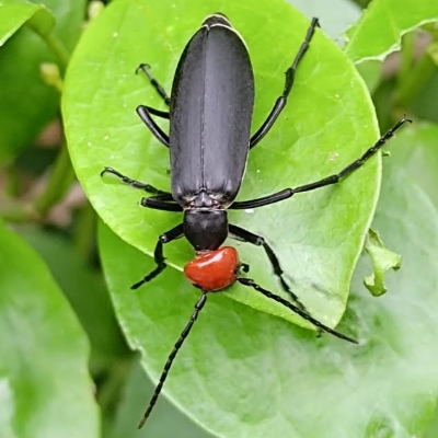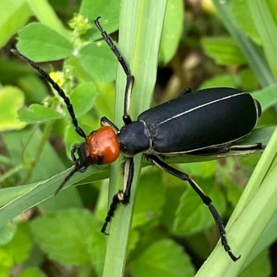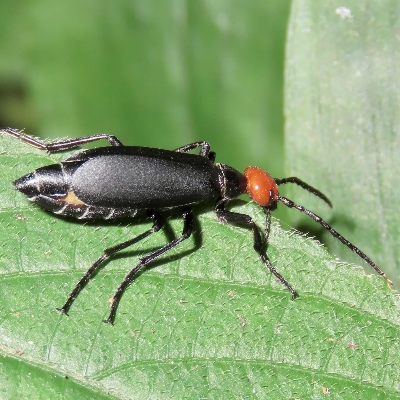 ![]() 上面照片:林美燕拍攝 地膽科 〉豆芫青屬 〉豆芫青(Epicauta hirticornis、豆地膽) (原生種;台灣物種名錄標名豆芫青,別名豆地膽,地膽科,豆芫青屬,附有照片;體長約2公分,體色黑色,頭部紅色;具有毒性,能引起皮膚水泡或潰爛) |