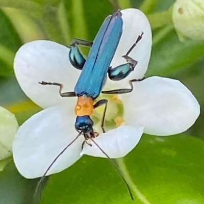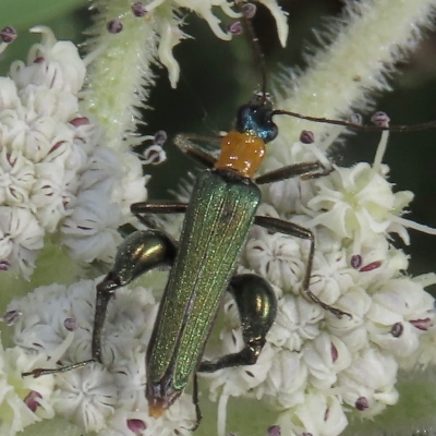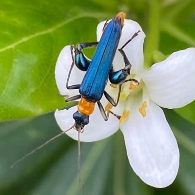 ![]() 上面照片:潘玉郎拍攝 (雌蟲) 擬天牛科 〉擬天牛屬 〉黃胸粗腿擬天牛(Oedemera testaceithorax) (原生種;體長約1公分;雄蟲腿節異常膨大,雌蟲正常) |