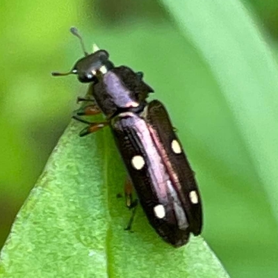 ![]() 上面照片:小花老師拍攝 吉丁蟲科 〉艾古利吉丁蟲屬 (凹頭吉丁蟲屬) 〉梭德氏凹頭吉丁蟲(Endelus sauteri) (台灣特有種;台灣物種名錄標名梭德氏凹頭吉丁蟲;體長不到0.5公分) |