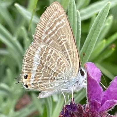![]() 上面照片:蟹老闆拍攝 灰蝶科 〉豆波灰蝶屬 〉豆波灰蝶(Lampides boeticus、波紋小灰蝶、波紋灰蝶、曲斑灰蝶、亮灰蝶、豆莢灰蝶) (原生種;台灣物種名錄標名豆波灰蝶,附有照片;翅基藍紫色;後翅下面有一條灰白色縱帶) |