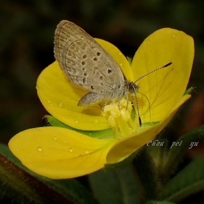 ![]() 上面照片:張儷蓁拍攝 (雌蝶) 灰蝶科 〉藍灰蝶屬 〉藍灰蝶(Zizeeria maha okinawana、沖繩小灰蝶、酢漿灰蝶、毛眼灰蝶) (原生種;台灣物種名錄標名藍灰蝶) |