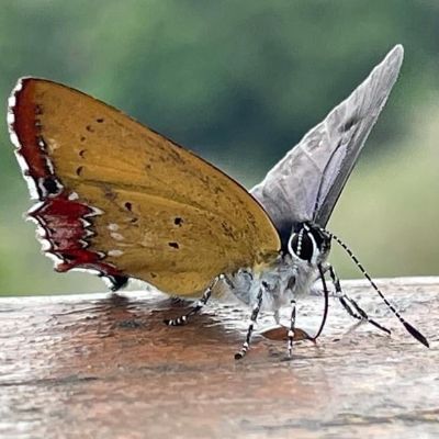 ![]() 上面照片:張儷蓁拍攝 灰蝶科 〉凹翅紫灰蝶屬 〉凹翅紫灰蝶(Mahathala ameria hainani、凹翅紫小灰蝶) (原生種;亞種;台灣物種名錄標名凹翅紫灰蝶) |