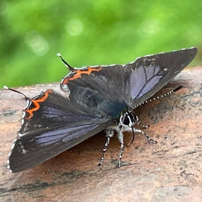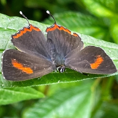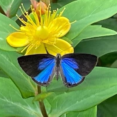 ![]() 上面照片:張儷蓁拍攝 灰蝶科 〉寬邊琉灰蝶屬 〉寬邊琉灰蝶(Callenya melaena shonen、寬邊琉璃小灰蝶、闊緣瑠璃小灰蝶、寬邊瑠璃小灰蝶、寬邊琉璃灰蝶) (原生種;亞種;台灣物種名錄標名寬邊琉灰蝶,別名寬邊琉璃小灰蝶、闊緣瑠璃小灰蝶、寬邊瑠璃小灰蝶、寬邊琉璃灰蝶,附有照片;展翅約2公分多;雄蝶翅面深藍色,具寬大的黑緣;雌蝶翅面黑褐色,前翅有少許的白斑) |