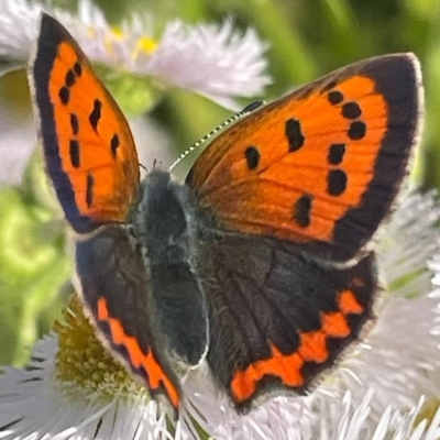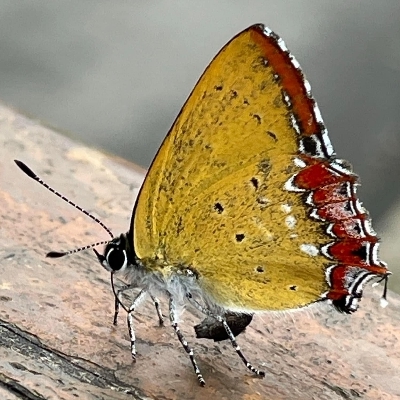 ![]() 上面照片:張儷蓁拍攝 灰蝶科 〉灰蝶屬 〉紅灰蝶(Lycaena phlaeas) (台灣物種名錄查無此學名及中文名;維基百科標名紅灰蝶,附有照片,照片相符) |