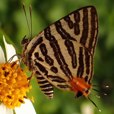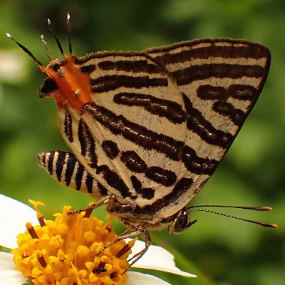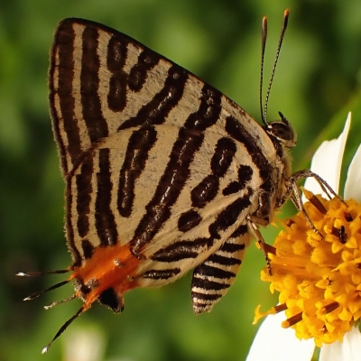 ![]() 上面照片:周佩玉拍攝 灰蝶科 〉虎灰蝶屬 〉三斑虎灰蝶(Spindasis syama lamuae、斑馬蝶、豆粒銀線灰蝶、三星雙尾燕蝶、三星雙尾小灰) (原生種;亞種;台灣物種名錄標名三斑虎灰蝶,別名斑馬蝶、豆粒銀線灰蝶、三星雙尾燕蝶、三星雙尾小灰,附有照片) |