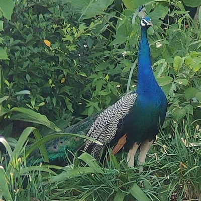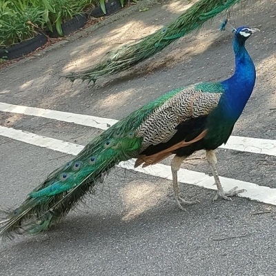 ![]() 上面照片:陳玉琴拍攝 (雄鳥) 鳥綱 〉雞形目 〉雉科 〉孔雀屬 〉藍孔雀(Pavo cristatus、印度藍孔雀) (入侵種) |