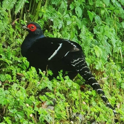 ![]() 上面照片:周佩玉拍攝 (雄鳥) 鳥綱 〉雞形目 〉雉科 〉長尾雉屬 〉黑長尾雉(Syrmaticus mikado、台灣帝雉、帝雉、羅漢腳雉) (台灣特有種;台灣物種名錄標名黑長尾雉) |