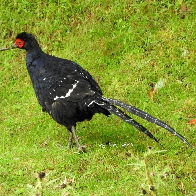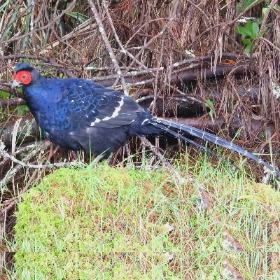 ![]() 上面照片:周佩玉拍攝 鳥綱 〉雞形目 〉雉科 〉長尾雉屬 〉黑長尾雉(Syrmaticus mikado、台灣帝雉、帝雉、羅漢腳雉) (台灣特有種;台灣物種名錄標名黑長尾雉) |