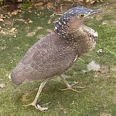 ![]() 上面照片:蟹老闆拍攝於新北市中和 鳥綱 〉鵜形目 〉鷺科 〉黑冠麻鷺 (亞成鳥) (亞成鳥意即尚未性成熟的鳥;黑冠麻鷺的亞成鳥體色具白色和黑色的斑點,下部有斑紋) |