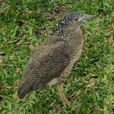 ![]() 上上面照片:陳玉琴拍攝 鳥綱 〉鵜形目 〉鷺科 〉黑冠麻鷺 (亞成鳥) (亞成鳥意即尚未性成熟的鳥;黑冠麻鷺的亞成鳥體色具白色和黑色的斑點,下部有斑紋) |