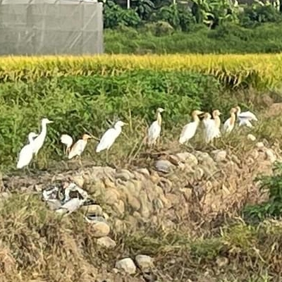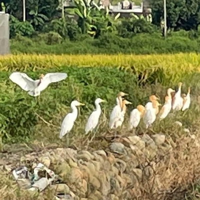 ![]() 上面照片:張儷蓁拍攝 鳥綱 〉鵜形目 〉鷺科 〉牛背鷺(黃頭鷺) (照片部分為中白鷺) |