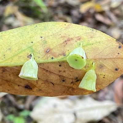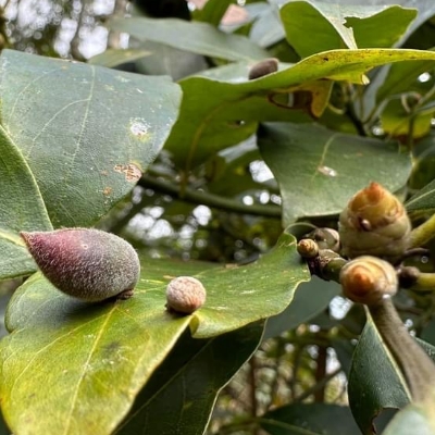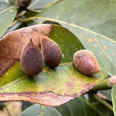 ![]() 上面照片:潘玉郎拍攝 上面植物:香楠 (疑似) 成因:雙翅目〉癭蚋科 〉壺癭喜楠癭蚋(Daphnephila urnicola) |