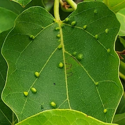 ![]() 上面照片:蟹老闆拍攝於陽明山二子坪 上面植物:牛奶榕 成因:雙翅目〉節蜱科(癭 蟎科) 〉江某畸節蜱(Abacarus eminens) |