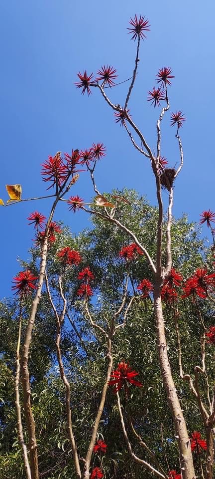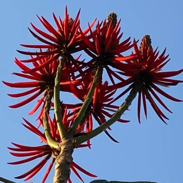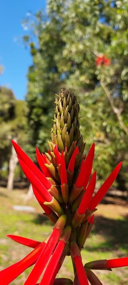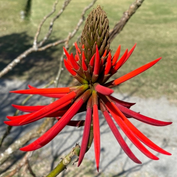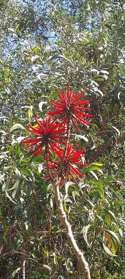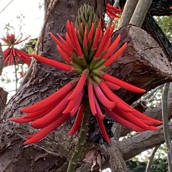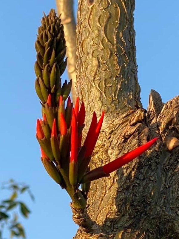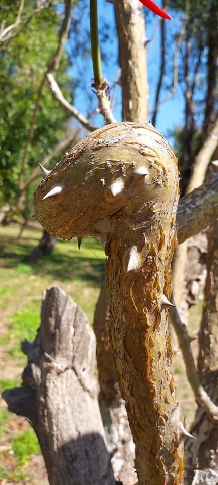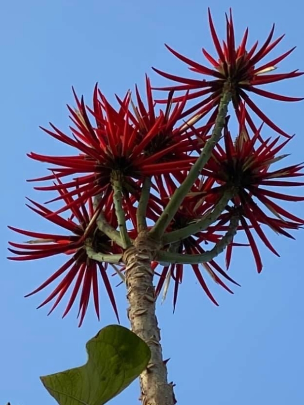 (栽培種;原產於南美巴西;種名 speciosa 是外表美麗的意思,台北植物園標名美麗刺桐;中國植物智和香港柴娃娃植物網標名象牙花;落葉小喬木;樹幹疏生瘤刺;三出複葉,互生,小葉卵形;總狀花序頂生,花冠不開,象牙狀,紅色;它是藉由蜂鳥授粉;巴西刺桐與別名火炬刺桐的南非刺桐,乃不同物種,不宜稱作火炬刺桐)