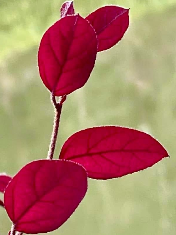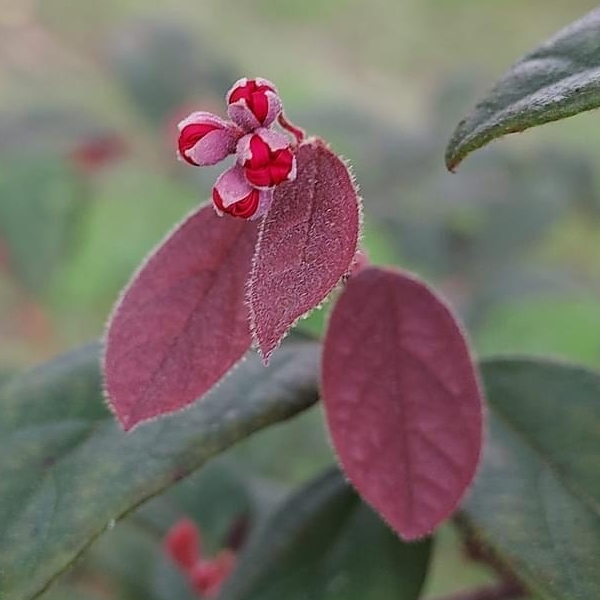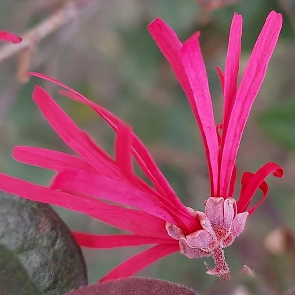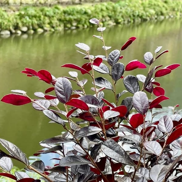 (栽培種;原生於中國大陸;台灣物種名錄查無此學名及中文名;紅花檵木是檵木的變種;灌木或小喬木;主枝直立,分枝多;單葉對生,卵形至橢圓形,綠色至紅紫色;花序頂生,3~8朵簇生;花瓣4枚,帶狀;原種花瓣白色,變種花瓣粉紅至深紅色;蒴果卵形)