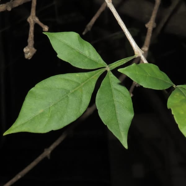 ![]() 上面照片:小花老師拍攝於台灣大學校園 (三出複葉,橢圓形至倒卵形,全緣或淺缺刻,葉柄具翼) |