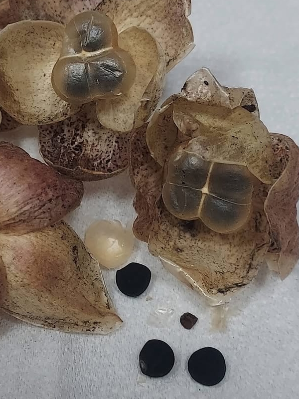 ![]() 上面照片:陳維琪拍攝 (花萼宿存,包覆蒴果,外觀呈桃形) |