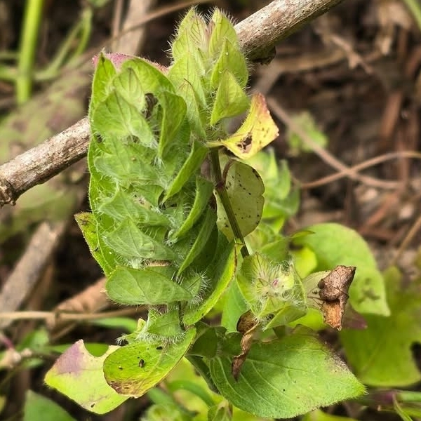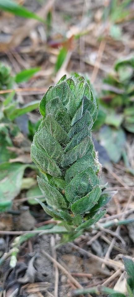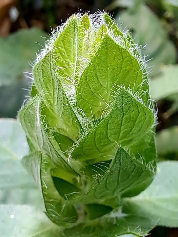 ![]() 上面照片:江亮亮拍攝 (苞片卵形,葉狀,被毛,緣毛明顯;花序由層層苞片堆疊,形似蝦蛄,故有蝦蛄草之別名) |