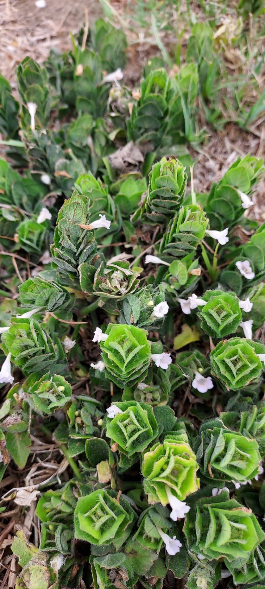 (歸化種;原生於中美洲附近一帶;草本;直立或匍匐生長,高約50公分;單葉對生,卵形,全緣;穗狀花序,頂生;花冠長筒狀,白色,筒外密被細毛;苞片卵形,葉狀,被毛,緣毛明顯;花序由層層苞片堆疊,形似蝦蛄,故有蝦蛄草之別名;蒴果卵球形)